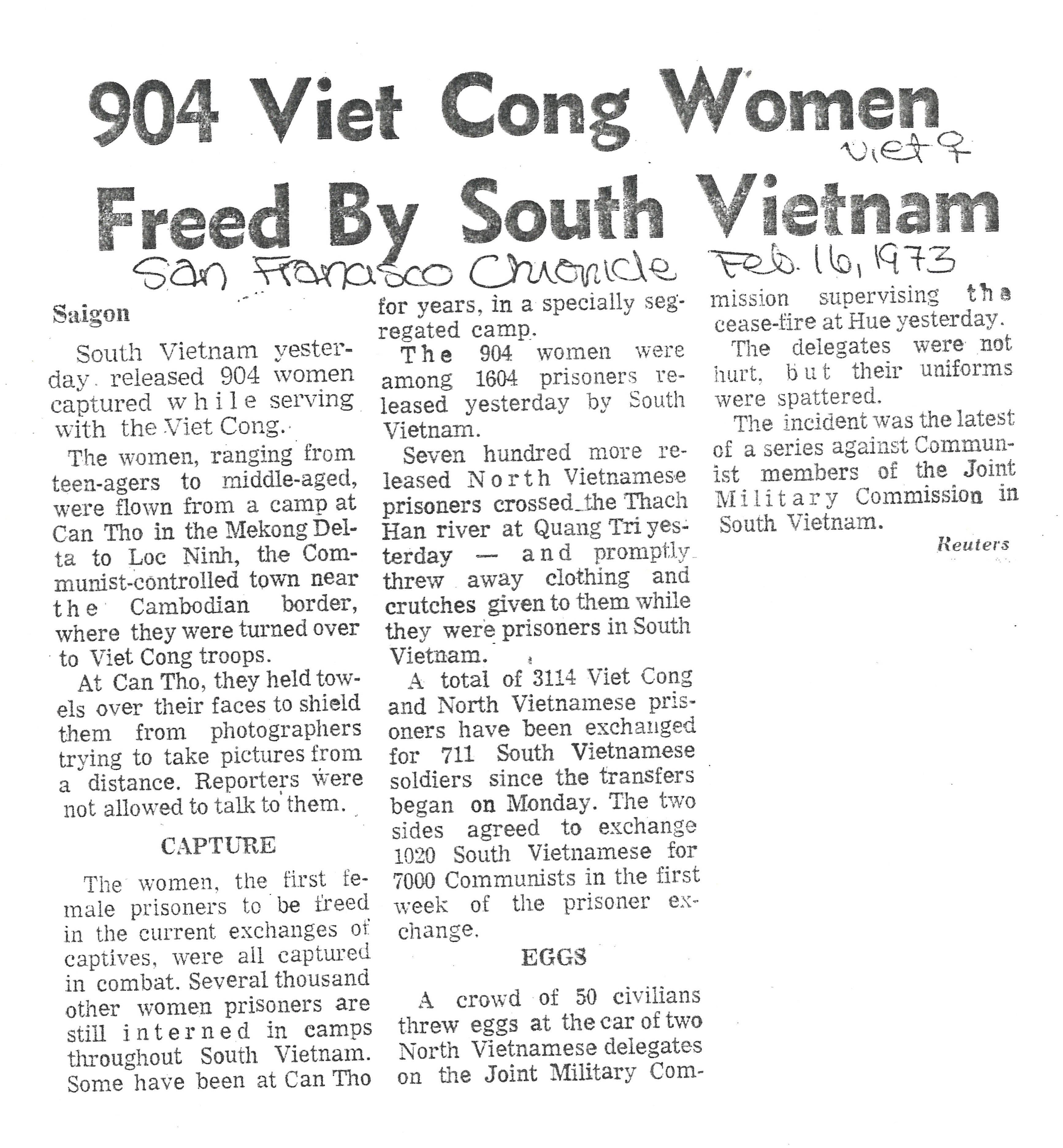 904 Viet Cong Women Freed By South Vietnam, San Francisco Chronicle, February 16, 1973