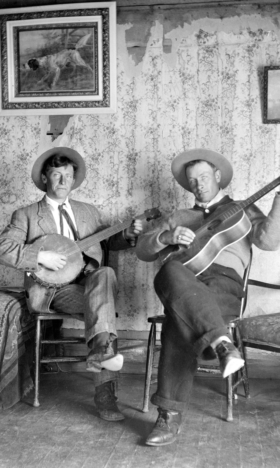 Louis Martin and Dave Nichols playing the banjo and guitar, March 1911