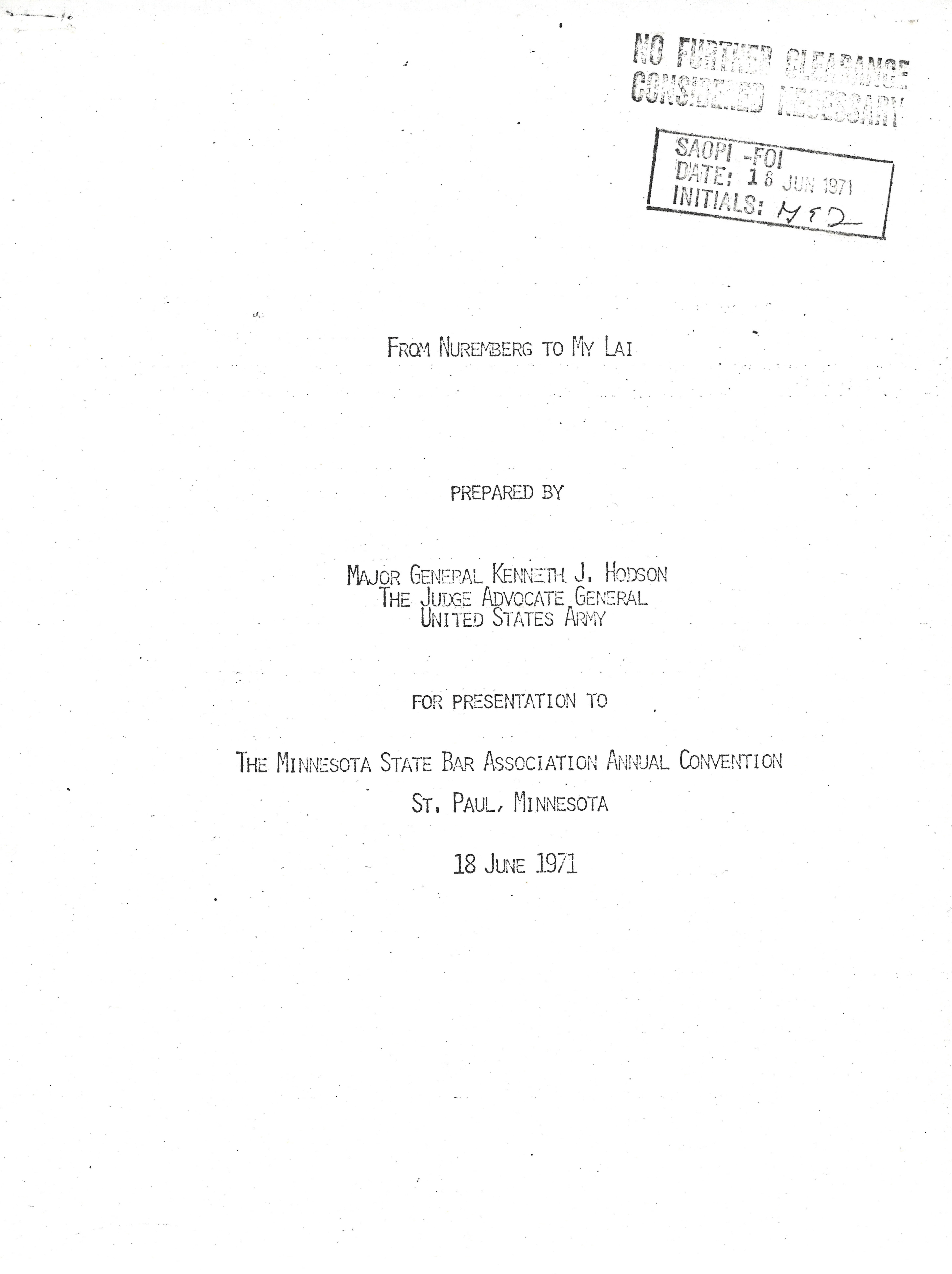 "From Nuremberg To My Lai" by Kenneth J. Hodson, June 18, 1971