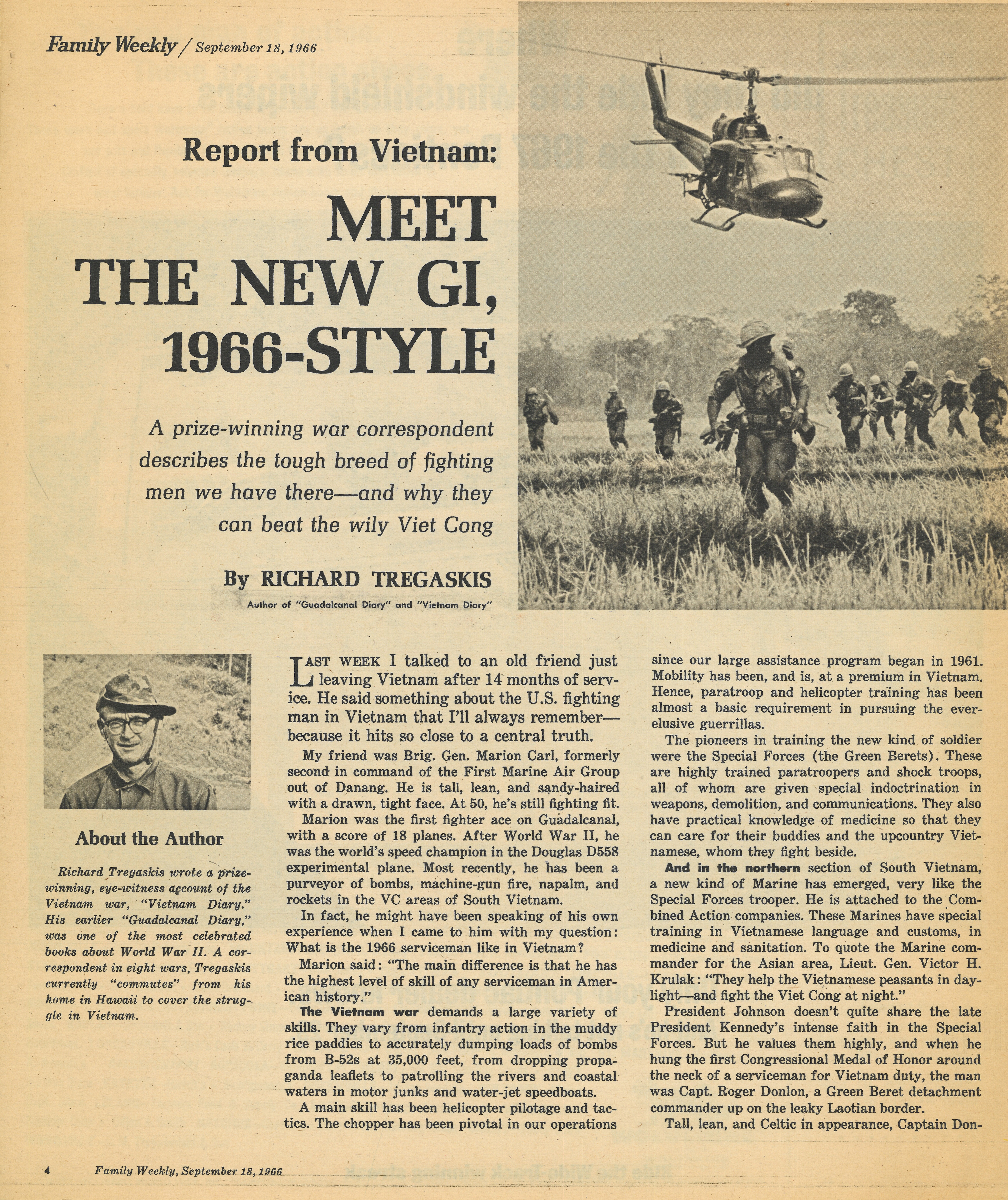 "Report from Vietnam: Meet The New GI, 1966-Style" by Richard Tregaskis, Family Weekly, September 18, 1966