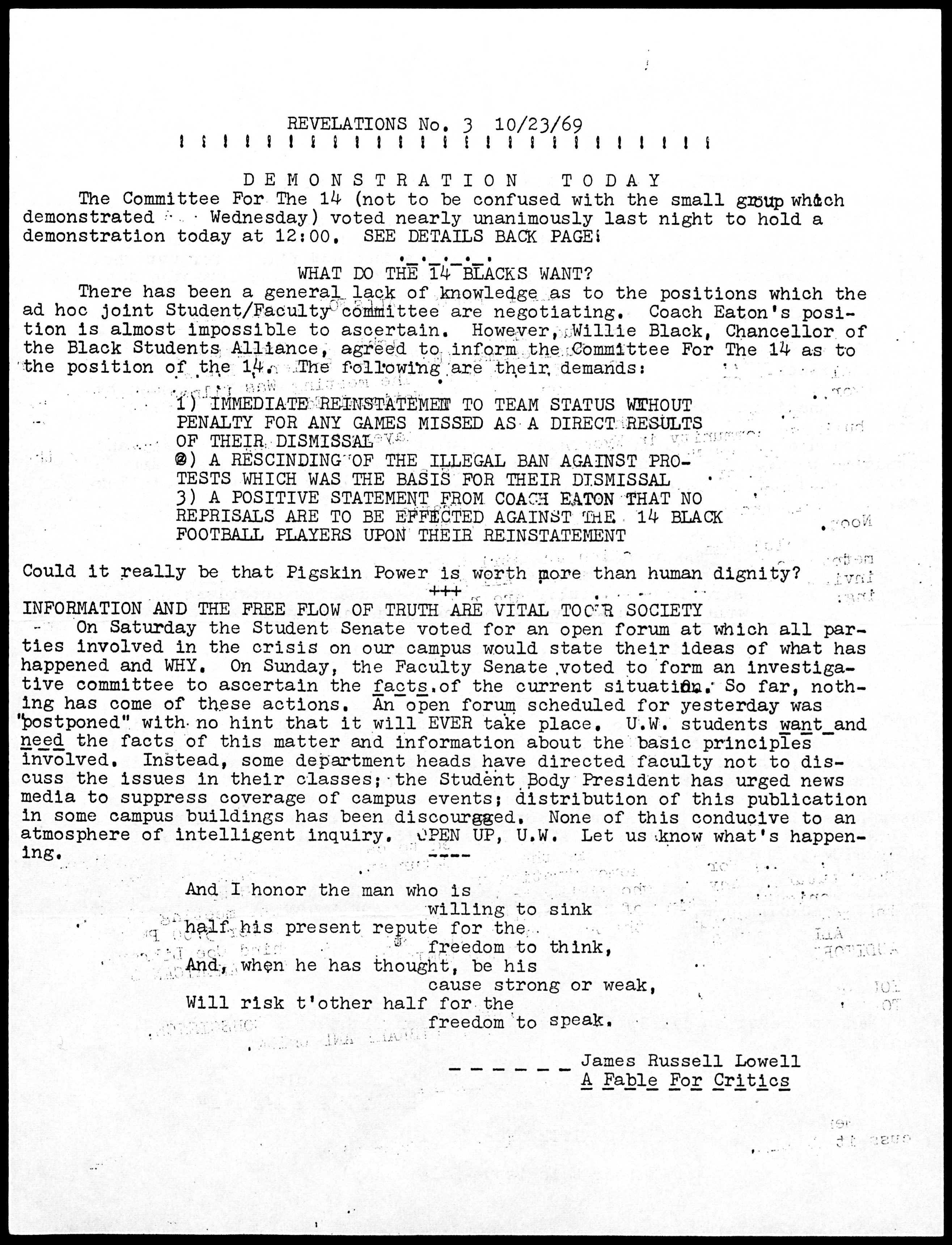 Committee for the 14 newsletter describing their meeting held October 22, 1969.