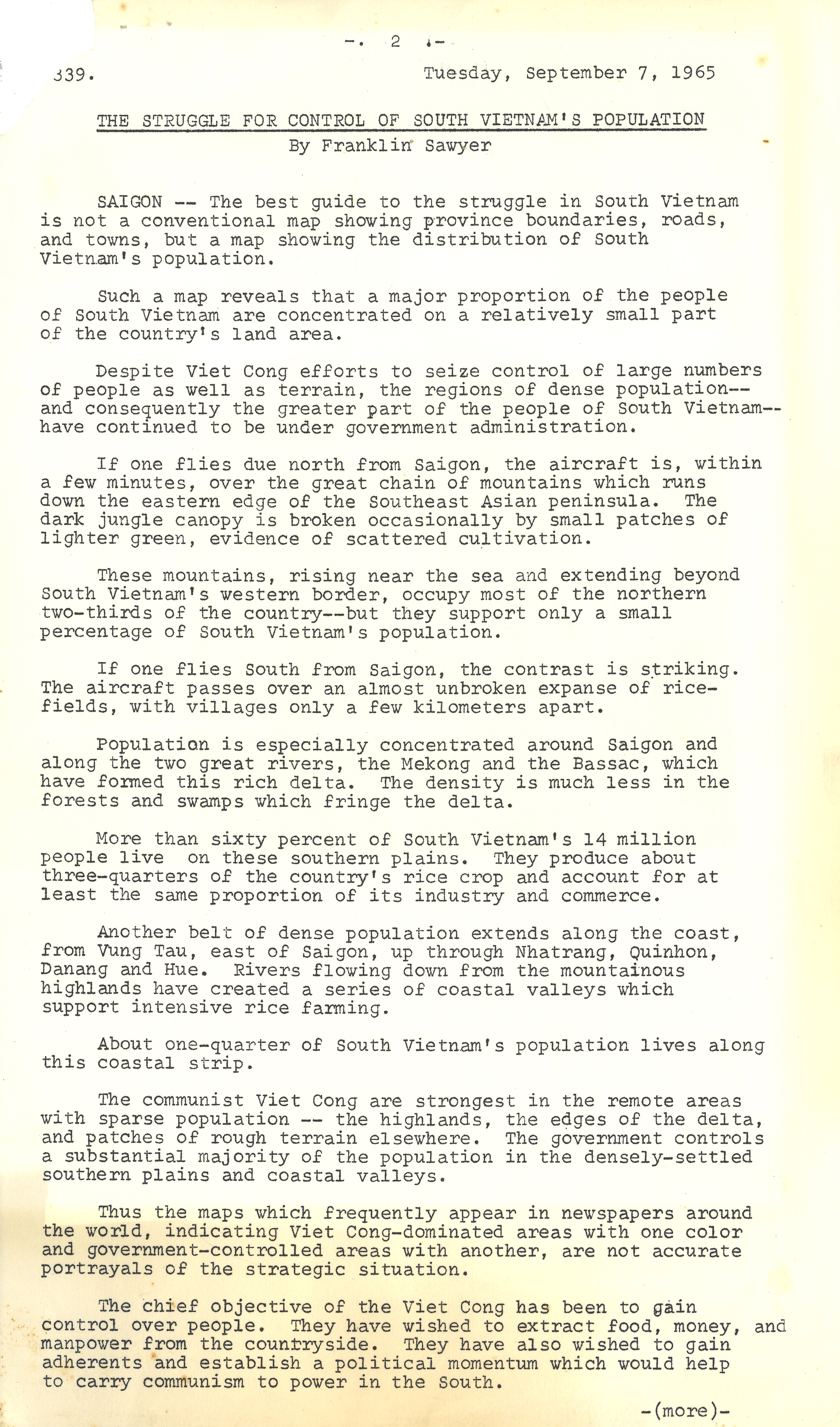 "The Struggle For Control Of South Vietnam's Population" by Frank Sawyer, September 7, 1965