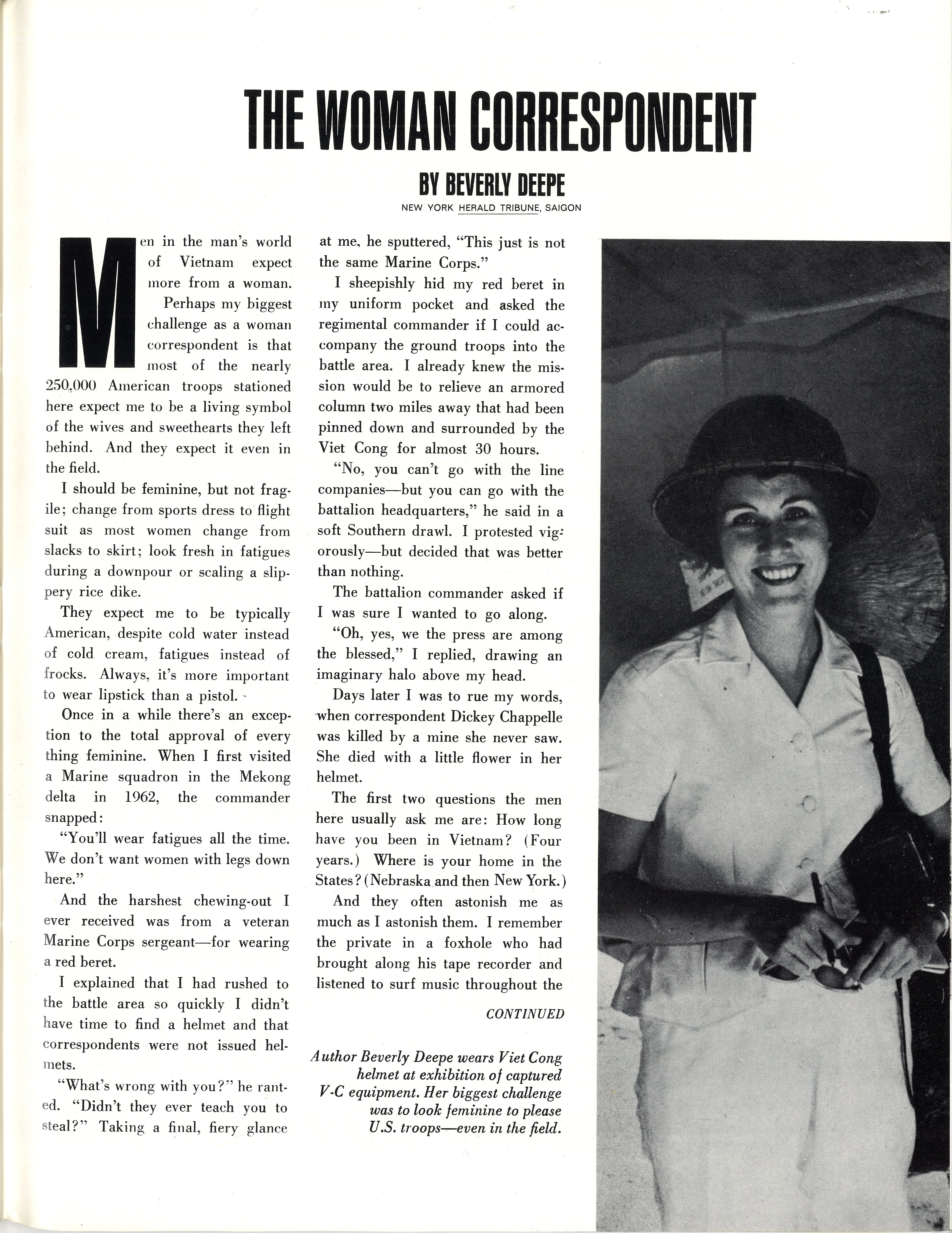 "The Woman Correspondent" by Beverly Deepe, Dateline, 1966