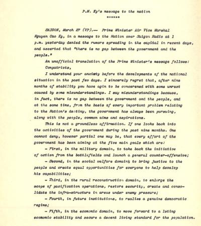 Prime Minister Nguyễn Cao Kỳ's Message To The Nation Of South Vietnam, March 26, 1966