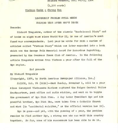 "Vietnam Seeks A Strong Man" by Richard Tregaskis, October 24, 1964