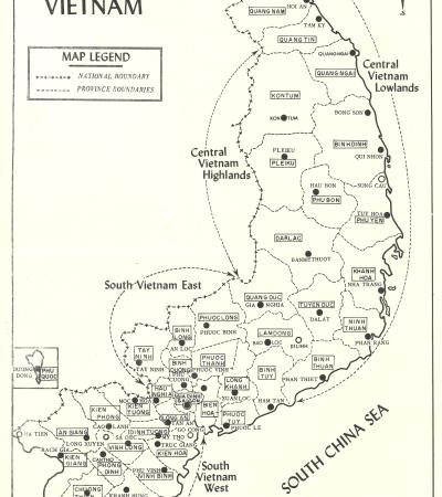 This map shows the provinces and significant towns of South Vietnam.