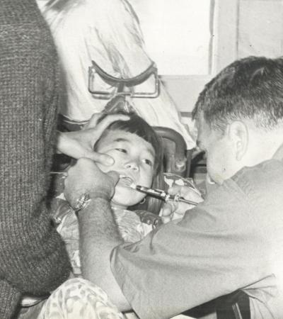 Photograph of U.S. Military Dentist Treating a Vietnamese Patient