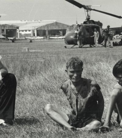 Photograph of American Helicopter and South Vietnamese Troops in Vietnam
