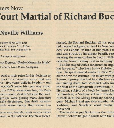 "The Court Martial of Richard Bucklin" by Roger Neville Williams, The New Republic, December 15, 1973