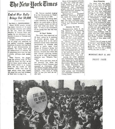 "End-of-War Rally Brings Out 50,000" by Paul L. Montgomery, The New York Times, May 12, 1975