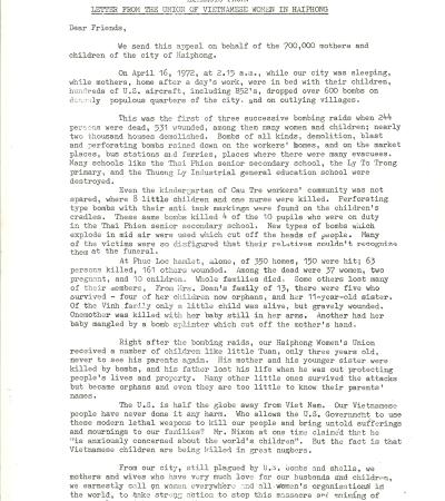 Letter From The Union Of Vietnamese Women In Haiphong, June 27, 1972