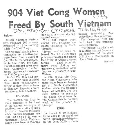 904 Viet Cong Women Freed By South Vietnam, San Francisco Chronicle, February 16, 1973