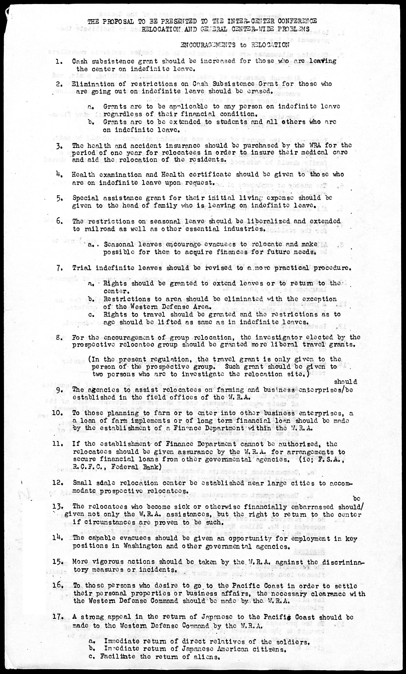 The Proposal to be Presented to the All Center Conference - Relocation and General Center-Wide Problems, February 1945