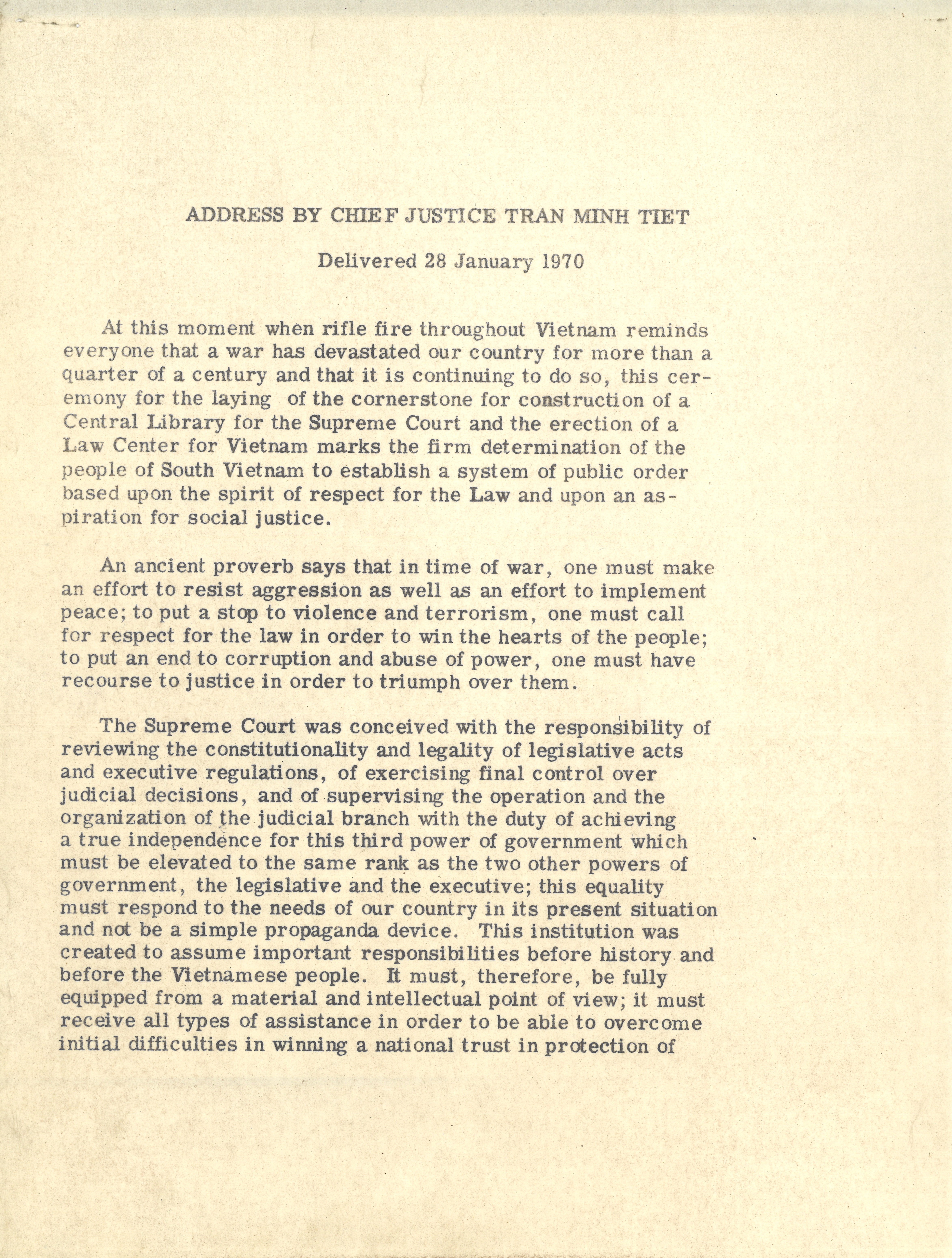 Address by Chief Justice Tran Minh Tiet, January 28, 1970