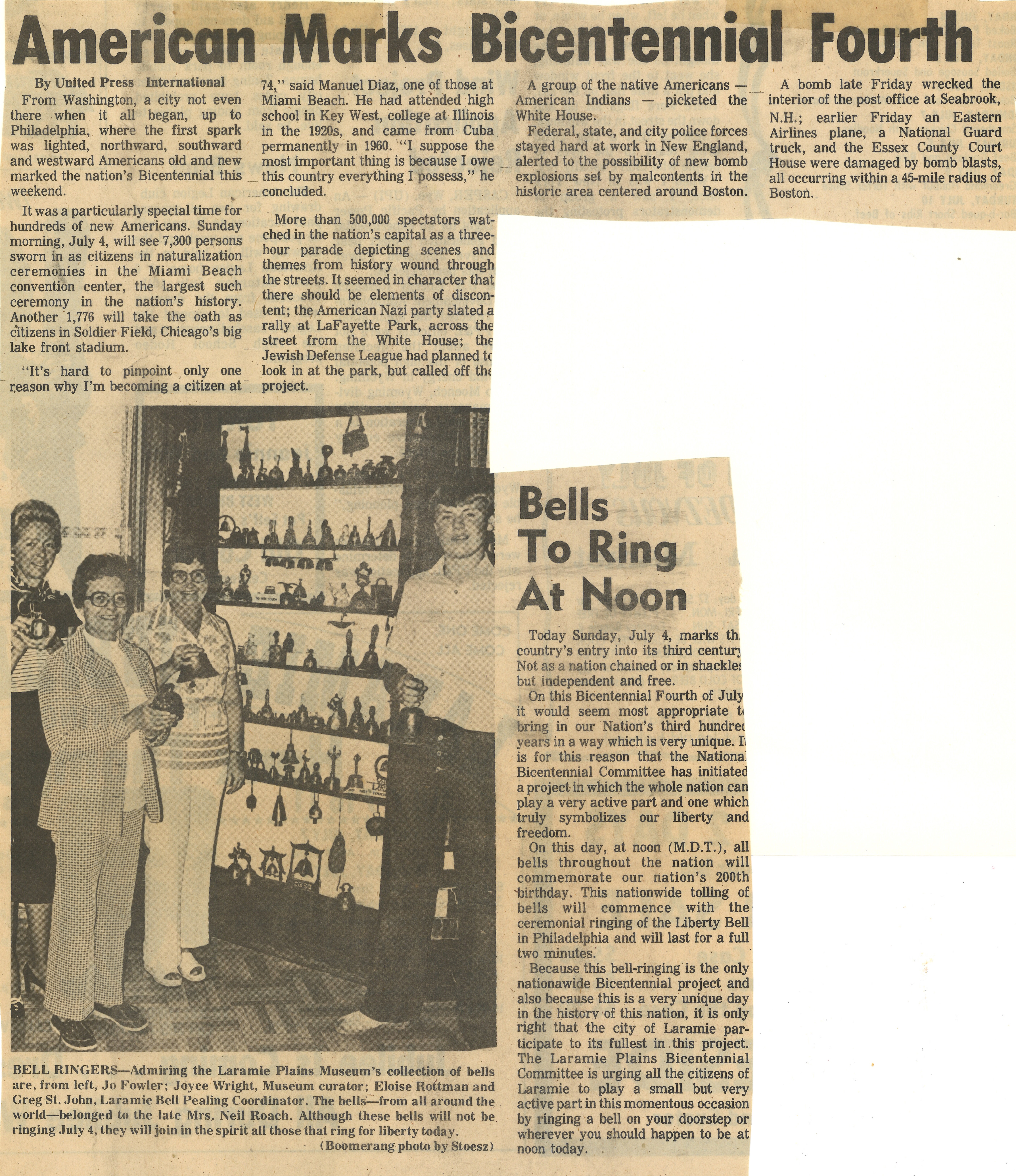 "American Marks Bicentennial Fourth", Laramie Daily Boomerang, July 4, 1976