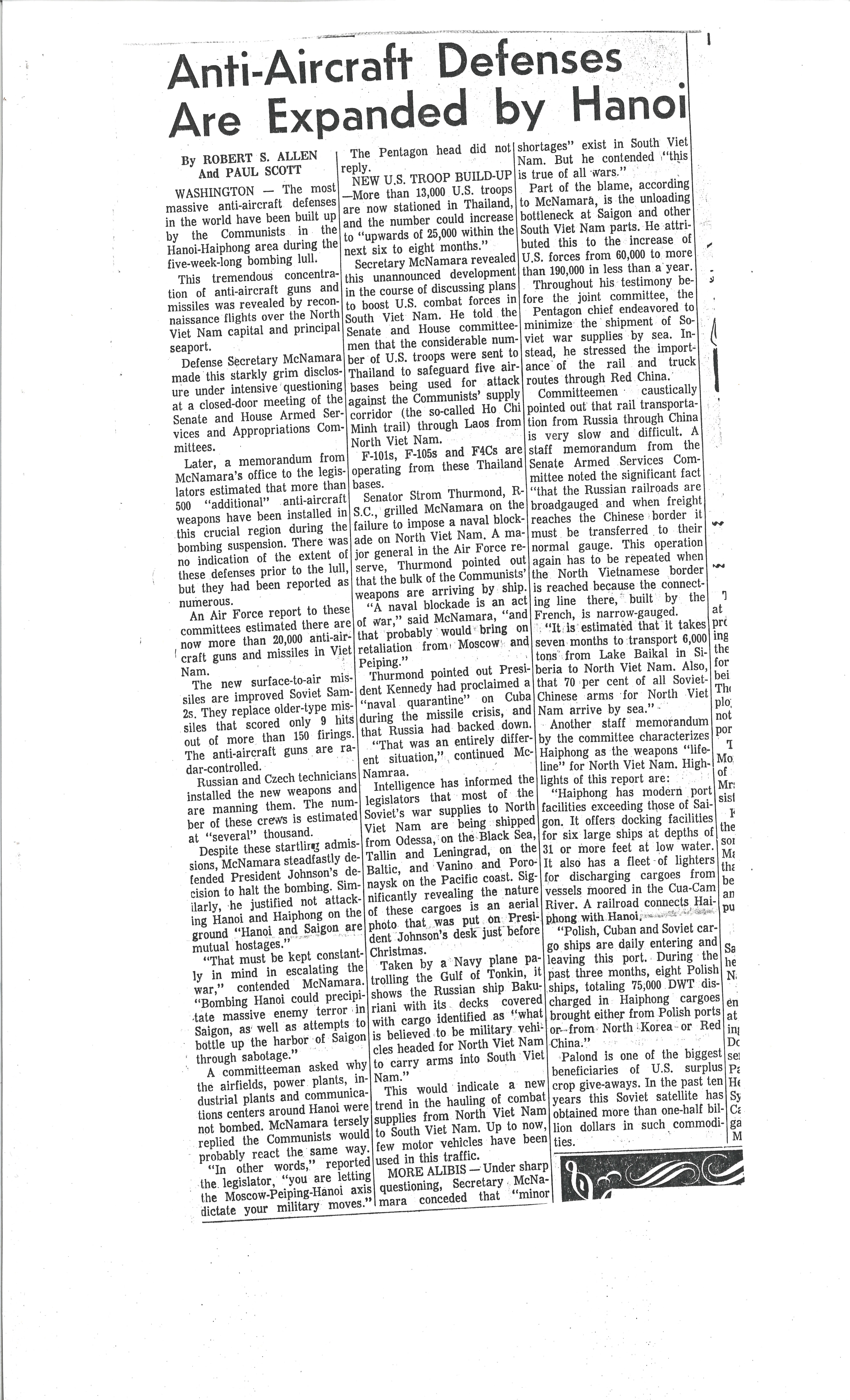 "Anti-Aircraft Defenses Are Expanded by Hanoi", 1966