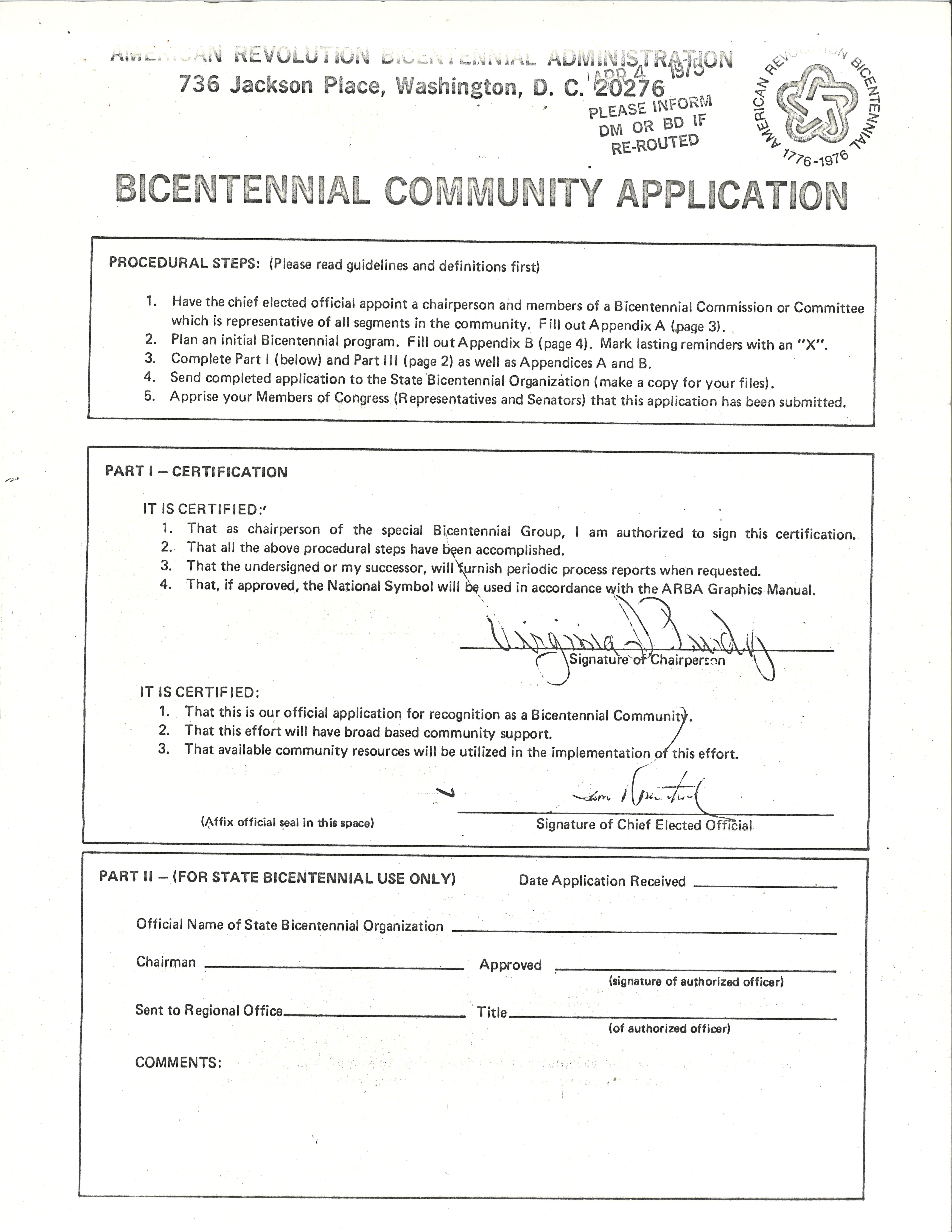 This is the application submitted by Buffalo, Wyoming to the American Revolution Bicentennial Administration. It includes a list of eight Bicentennial activities that the city envisioned undertaking.