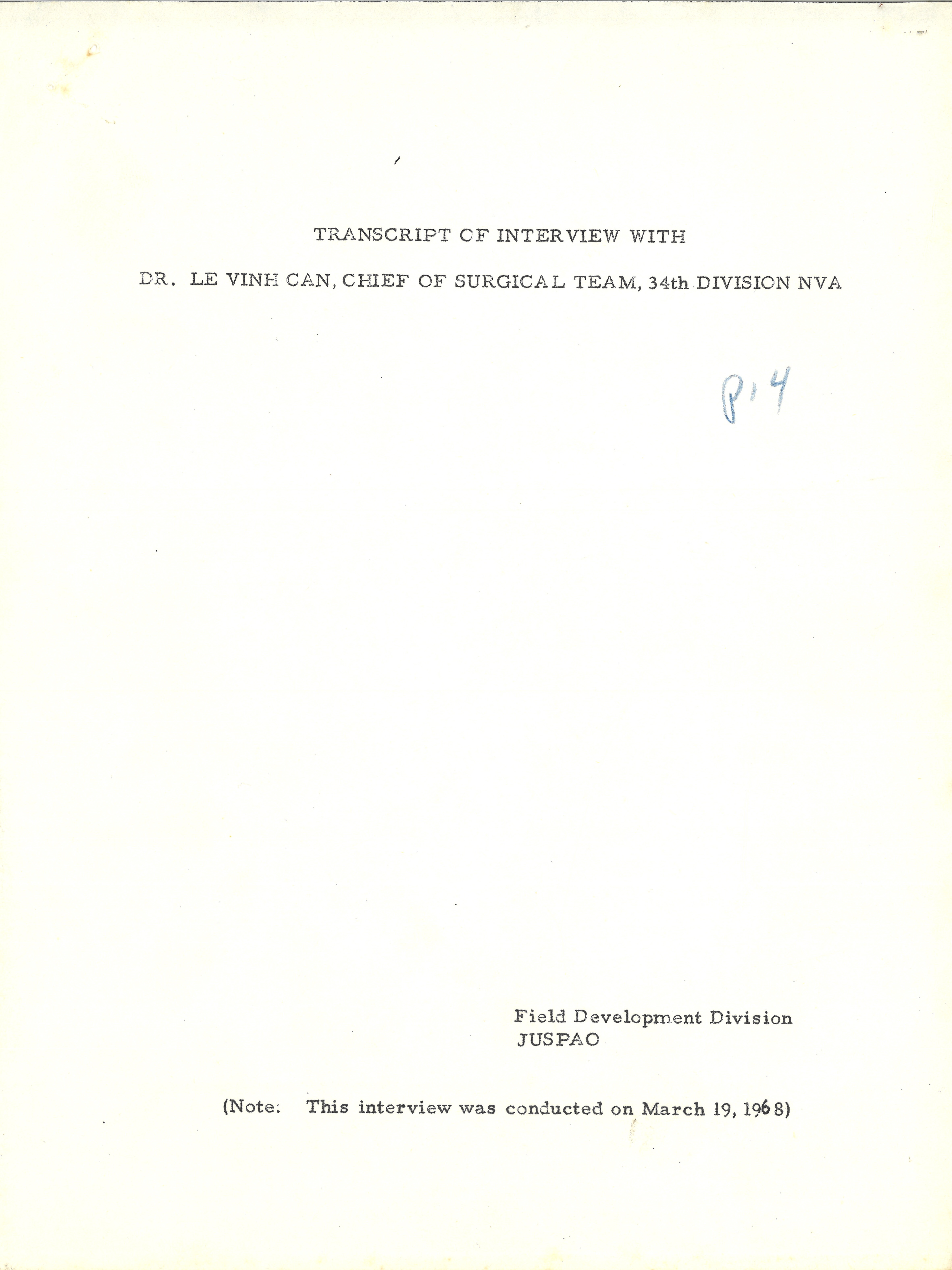Dr. Le Vinh Can Transcript, March 19, 1968
