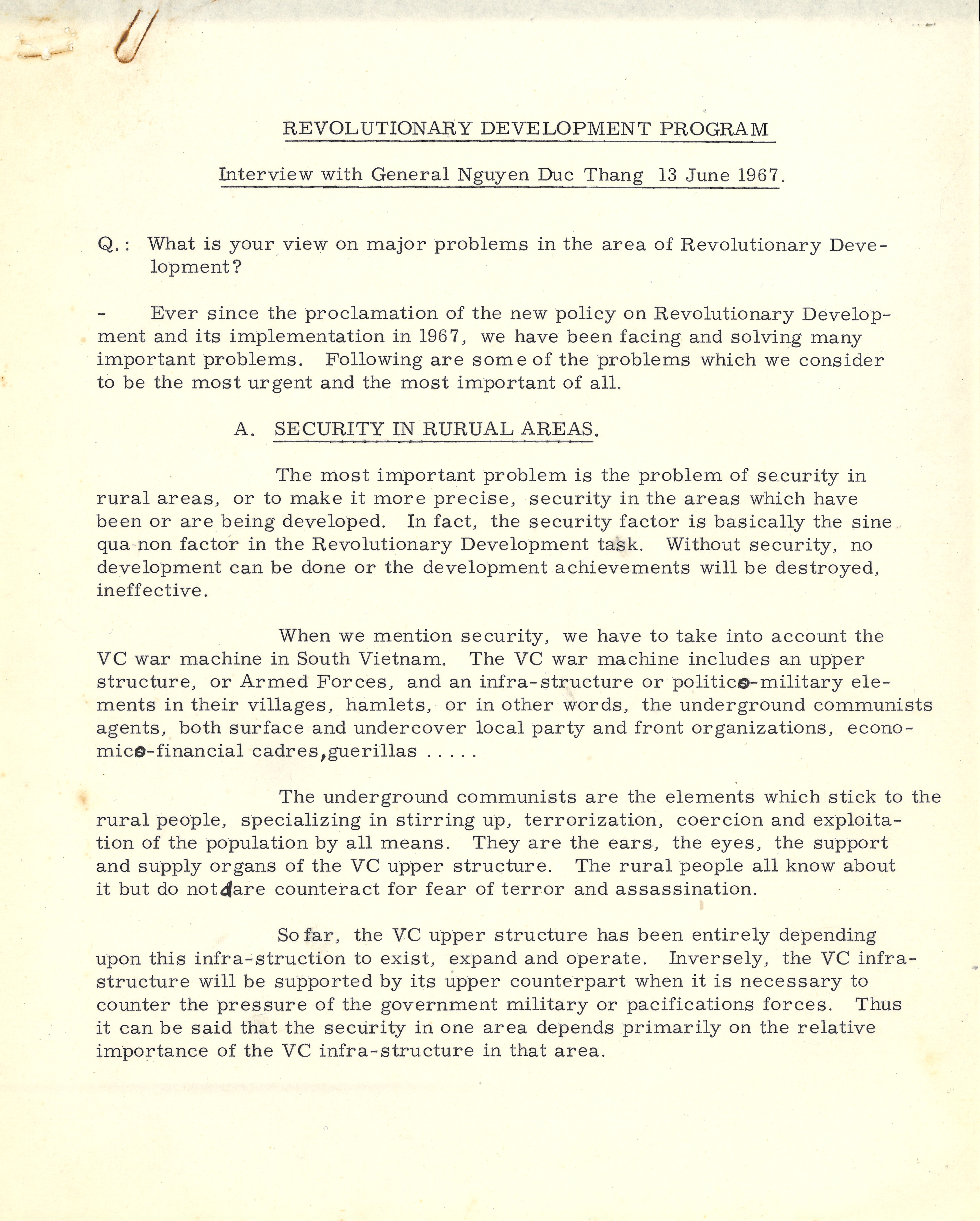 Interview With General Nguyễn Đức Thắng, June 13, 1967