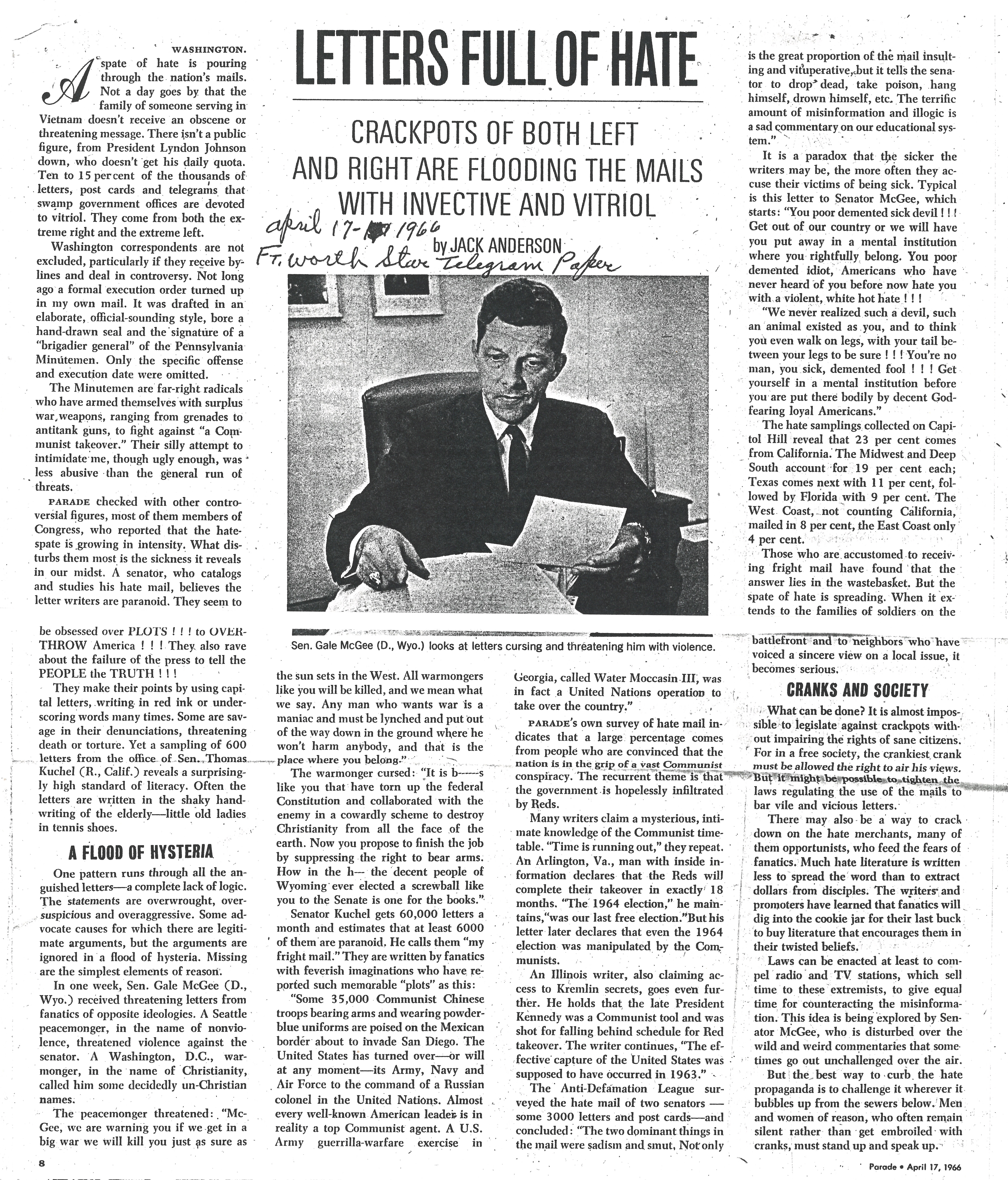 "Letters Full Of Hate" by Jack Anderson, Parade, April 17, 1966
