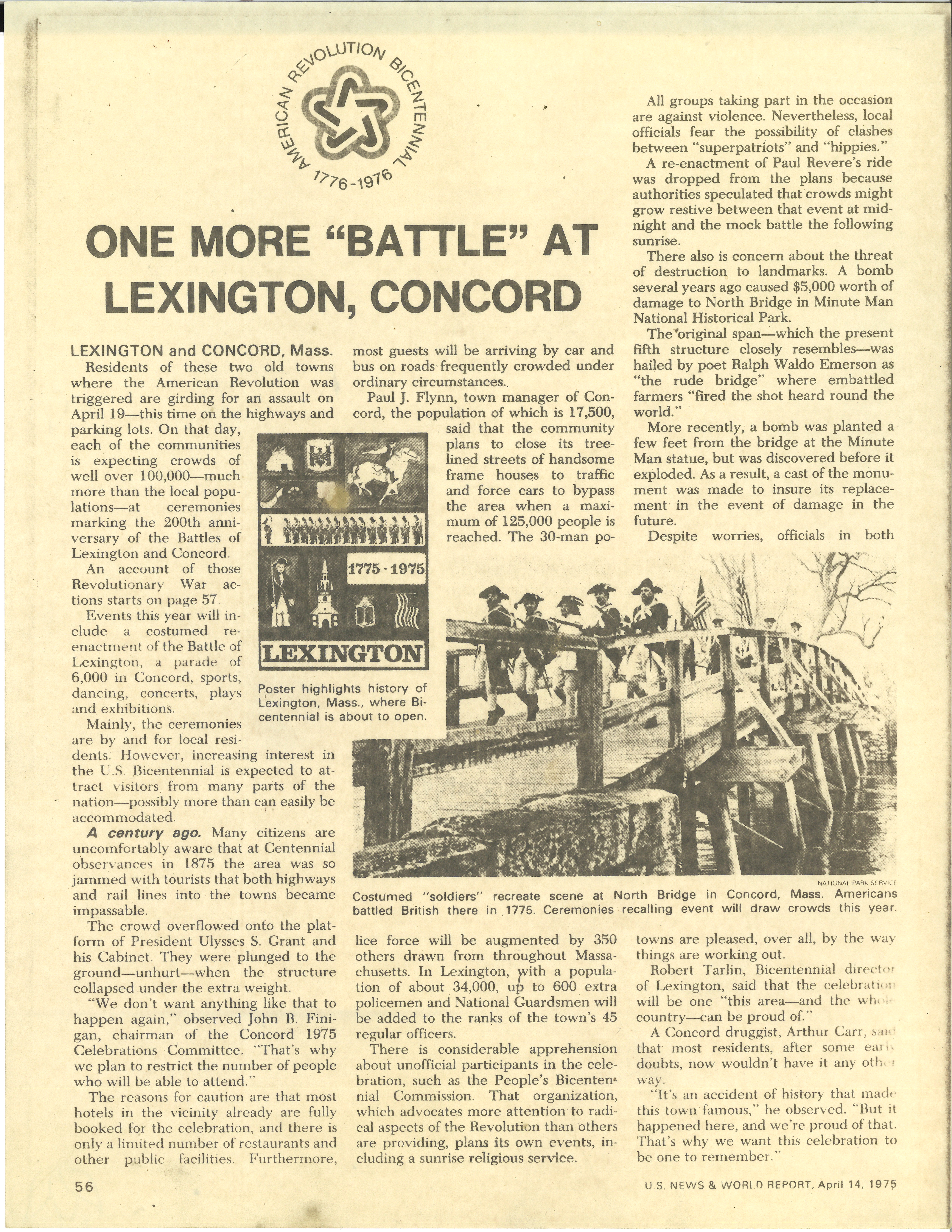 "One More Battle At Lexington, Concord", U.S. News & World Report, April 14, 1975