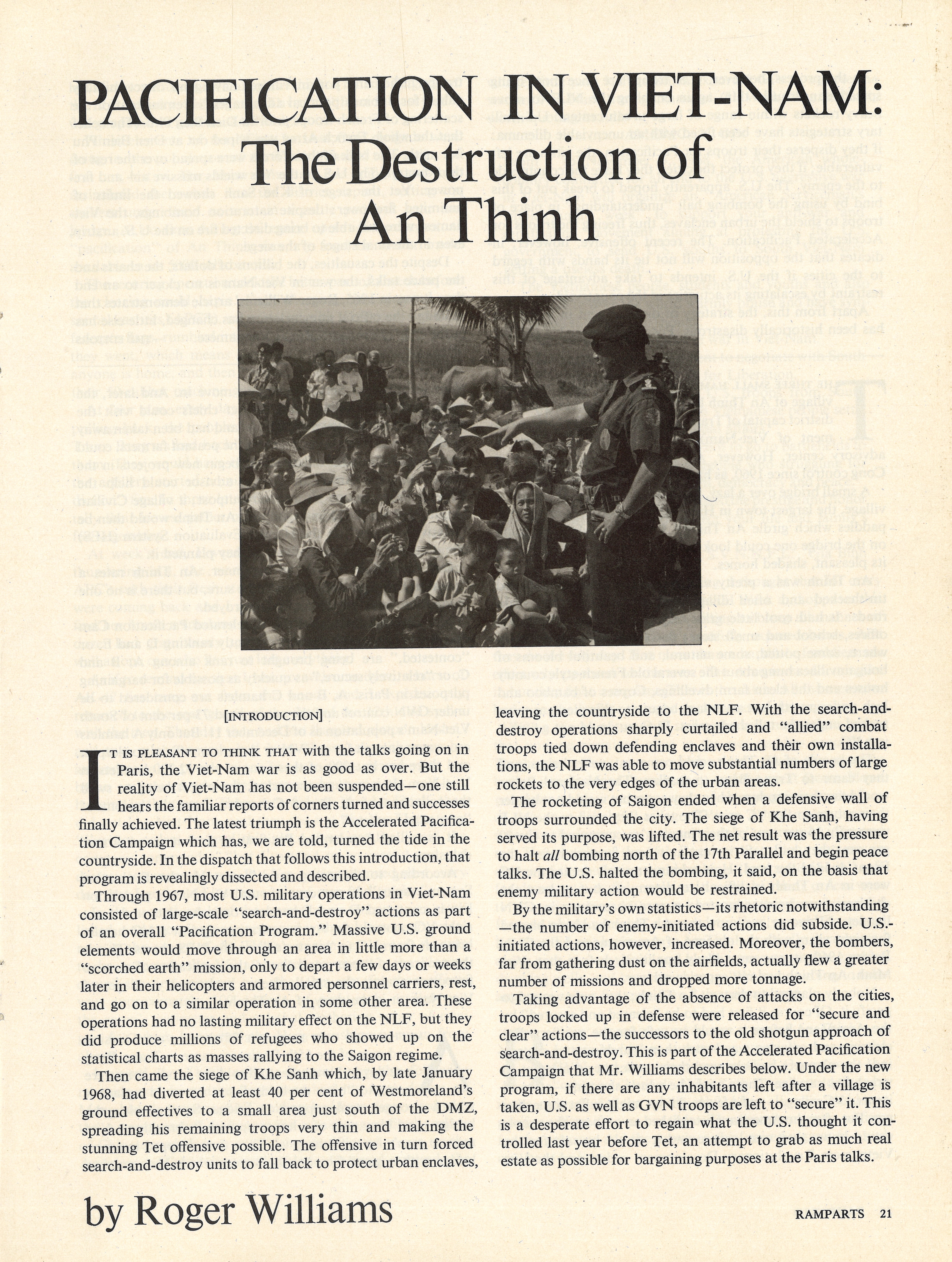 "Pacification In Viet-Nam: The Destruction of An Thinh" by Roger Williams, Ramparts, May 1969