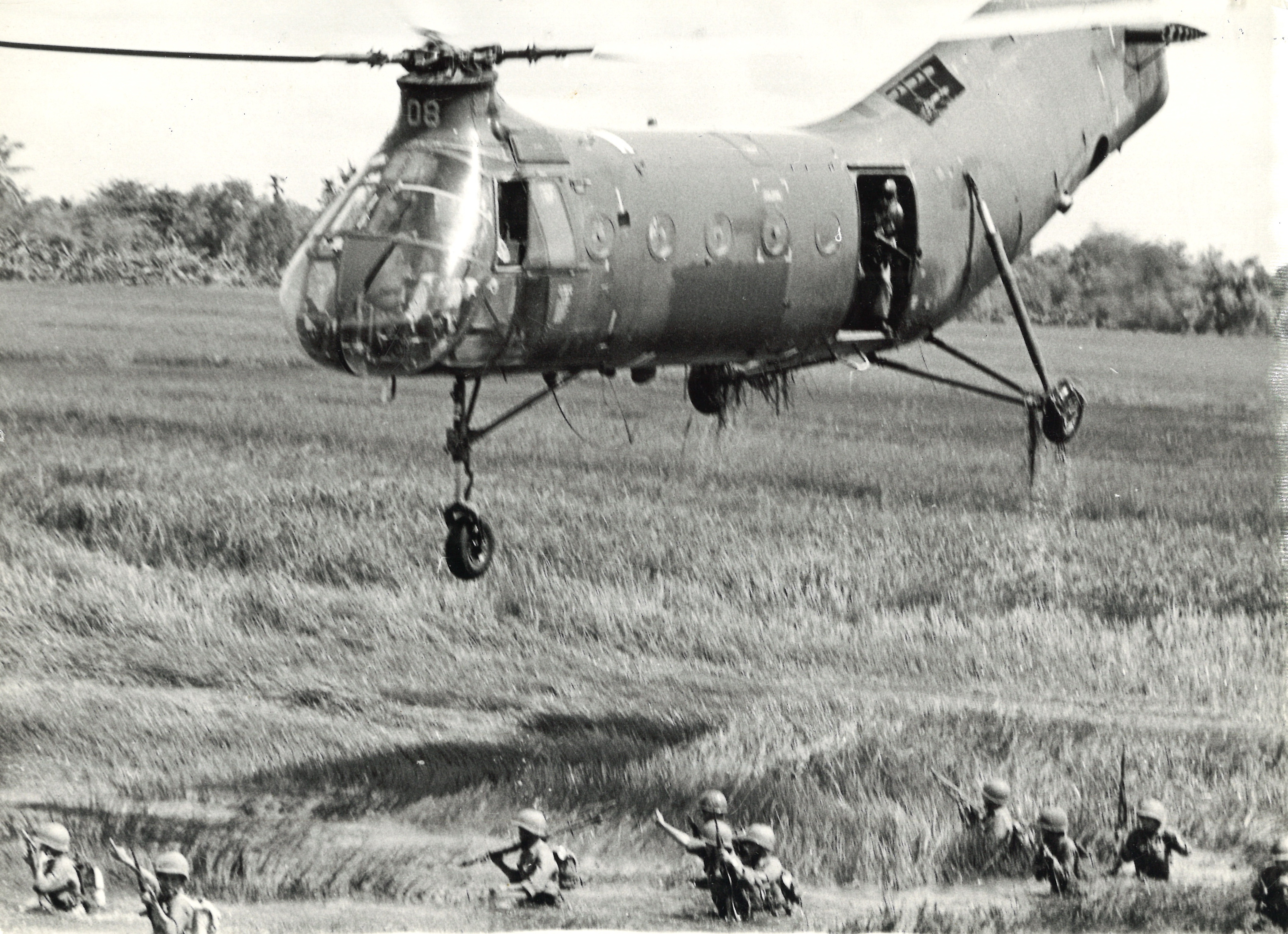 Photograph of American Helicopter and South Vietnamese Troops in Vietnam