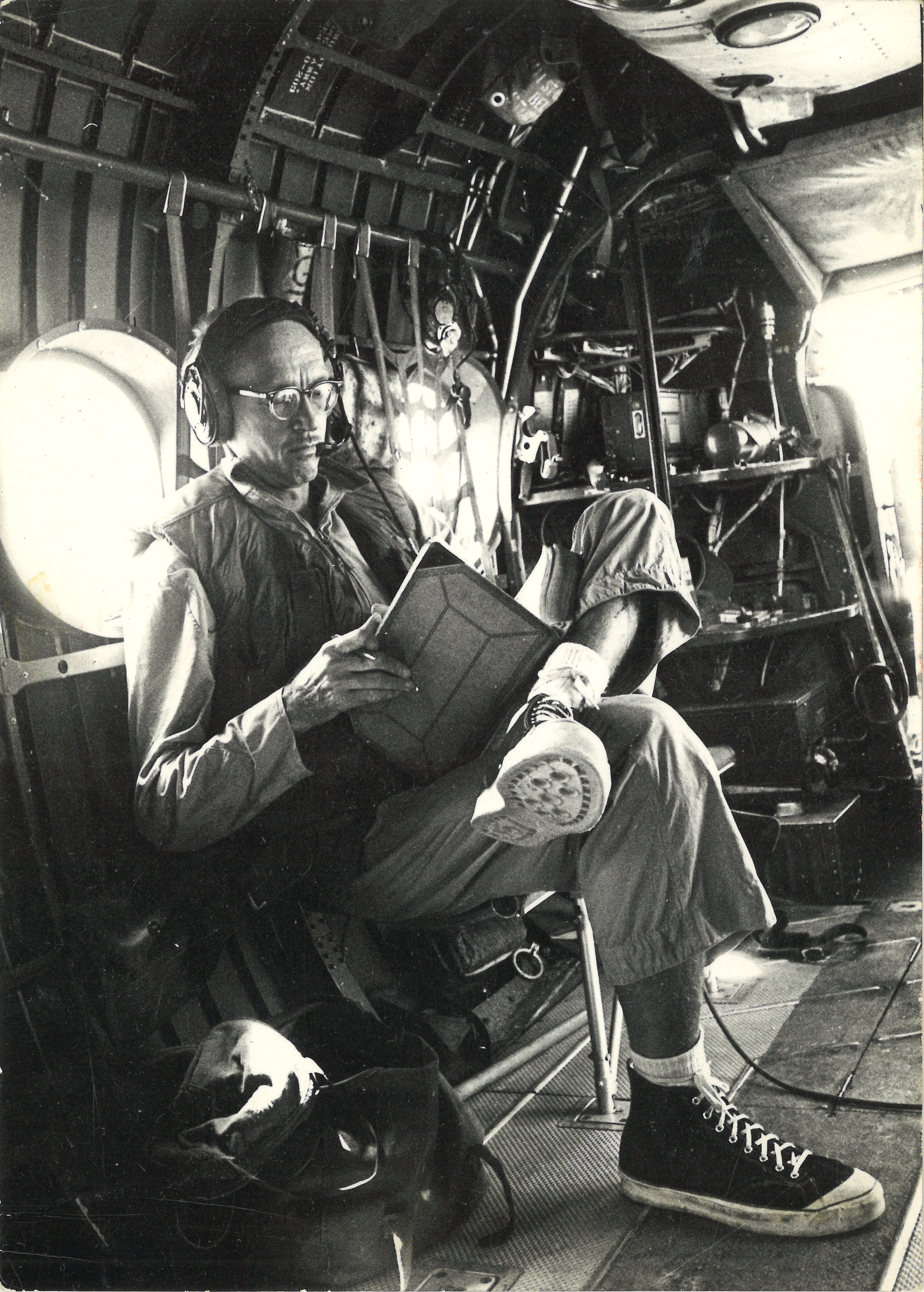 Photograph of Richard Tregaskis in a Helicopter
