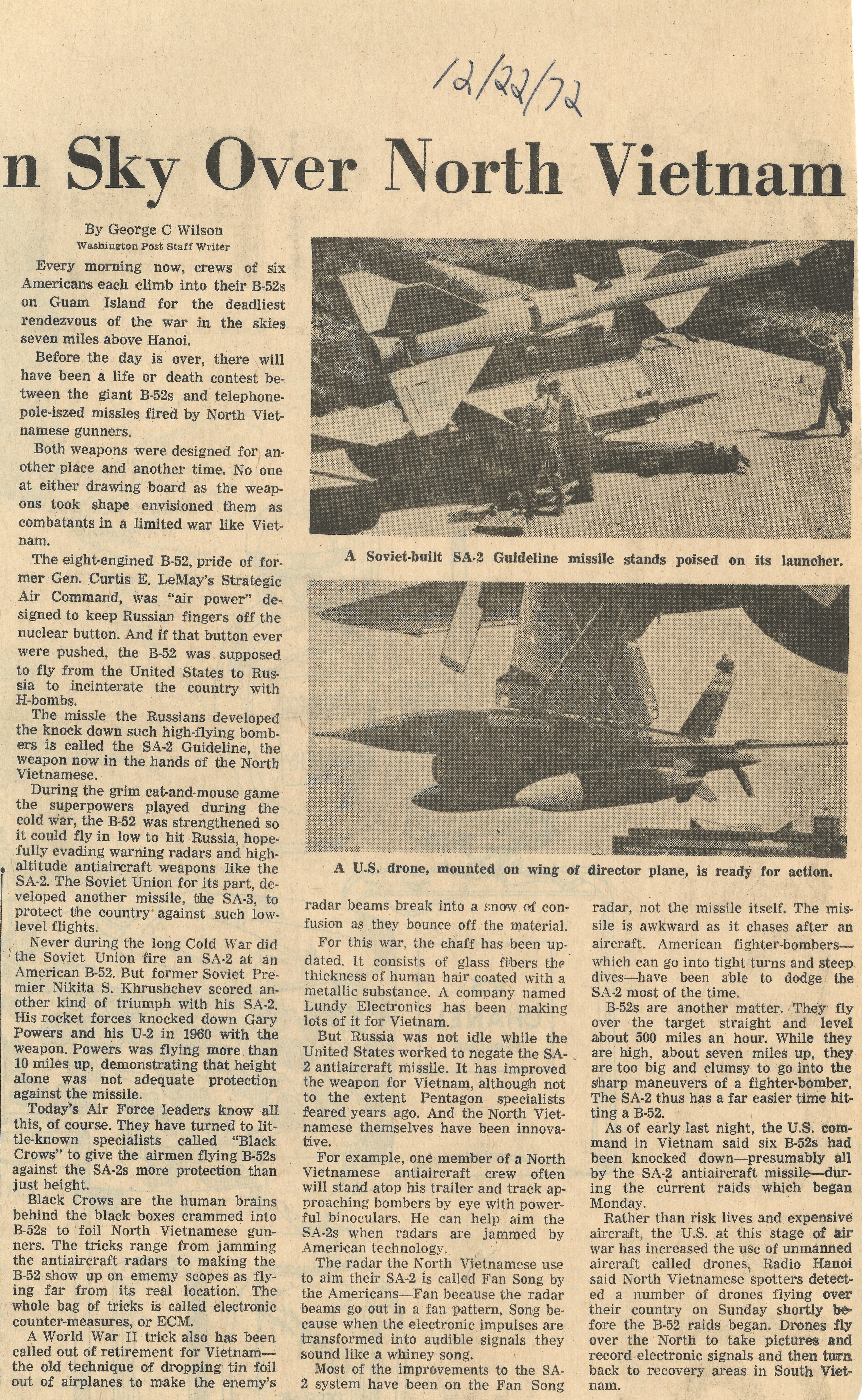 "Sky Over North Vietnam" by George C. Wilson, The Washington Post, December 22, 1972