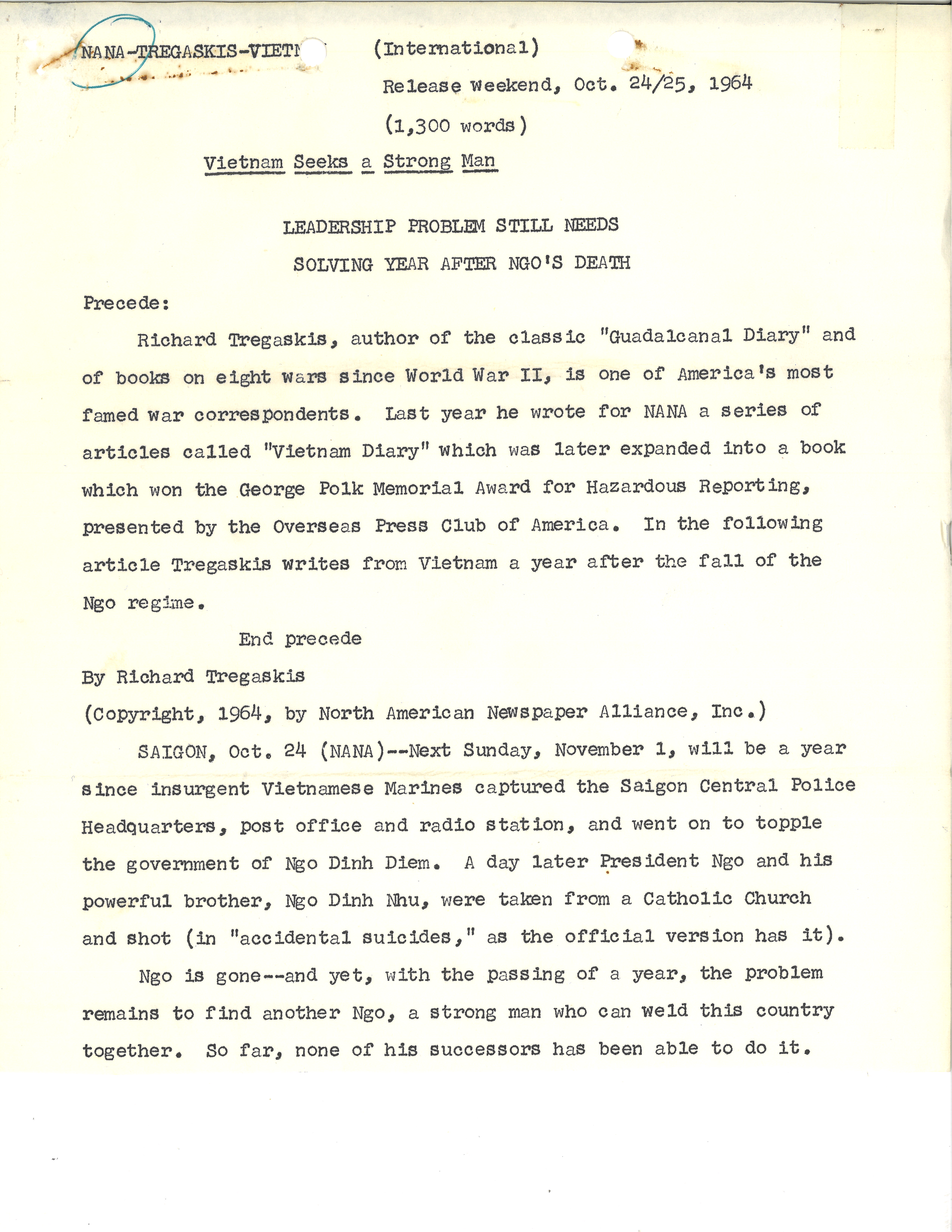 "Vietnam Seeks A Strong Man" by Richard Tregaskis, October 24, 1964