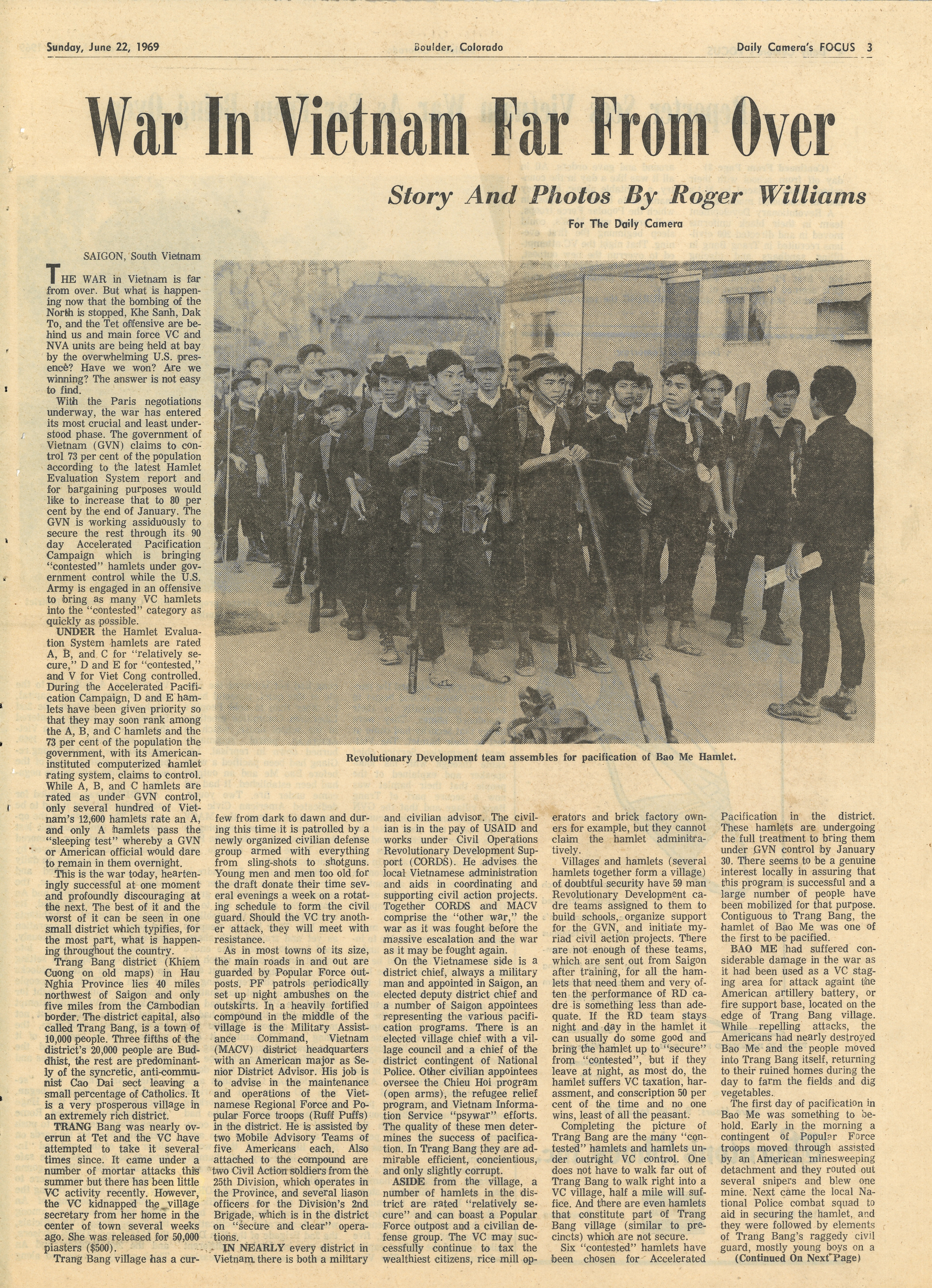 "War In Vietnam Far From Over" by Roger Williams, Focus, June 22, 1969