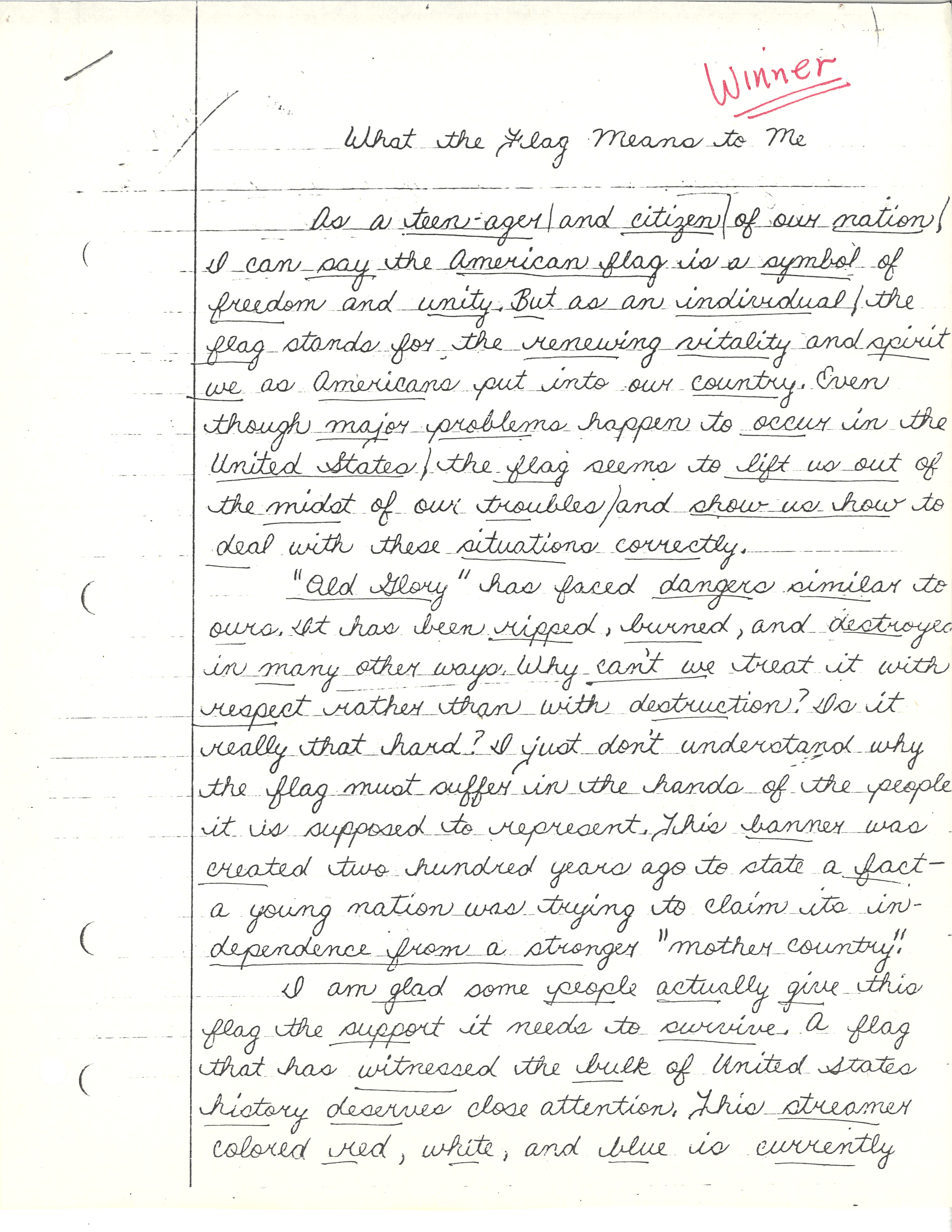 This was the winning essay in a competition held as part of a Bicentennial Flag Day Salute conducted in Maryland in 1976.