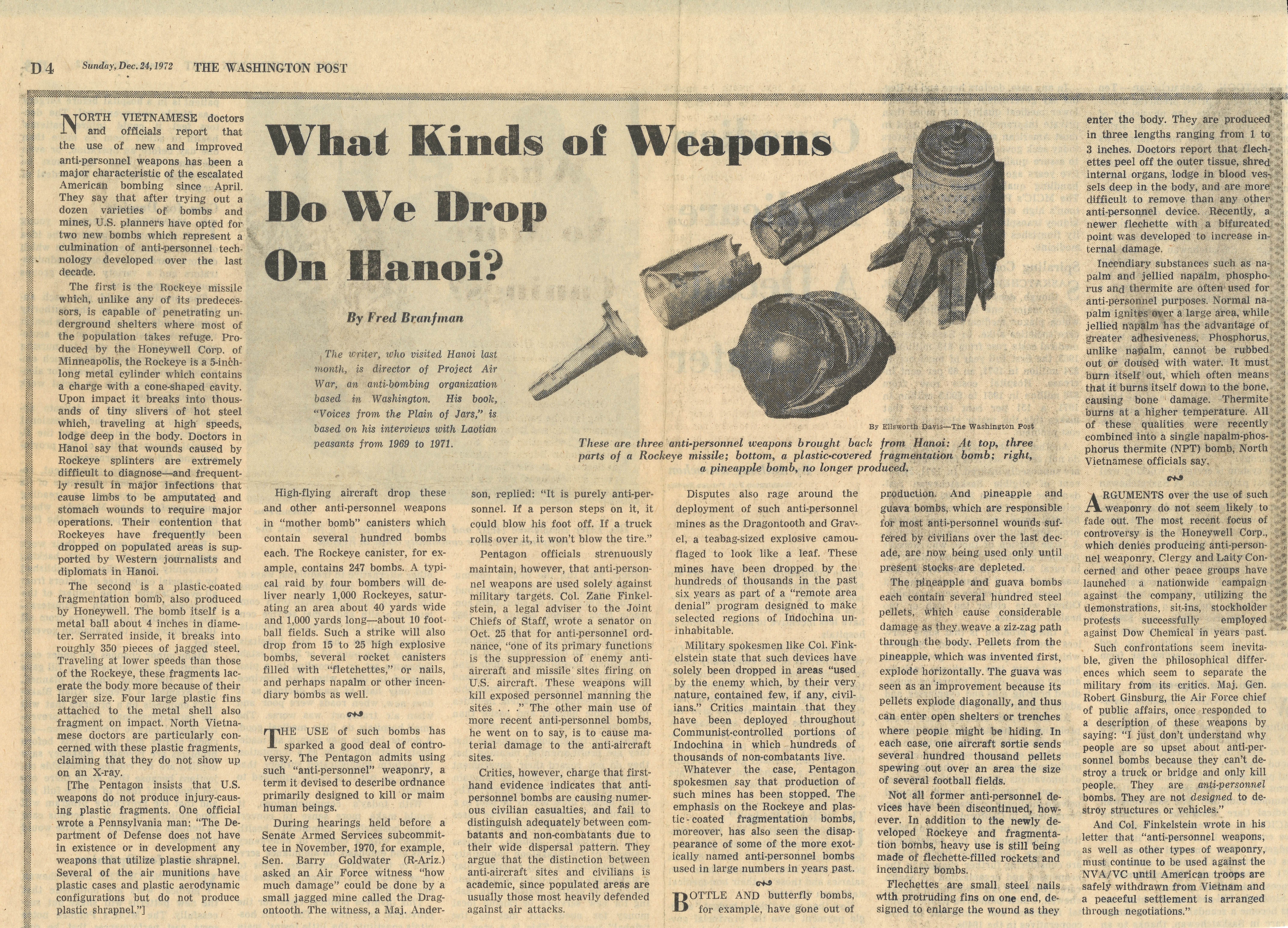 "What Kinds of Weapons Do We Drop On Hanoi?" by Fred Branfman, The Washington Post, December 24, 1972