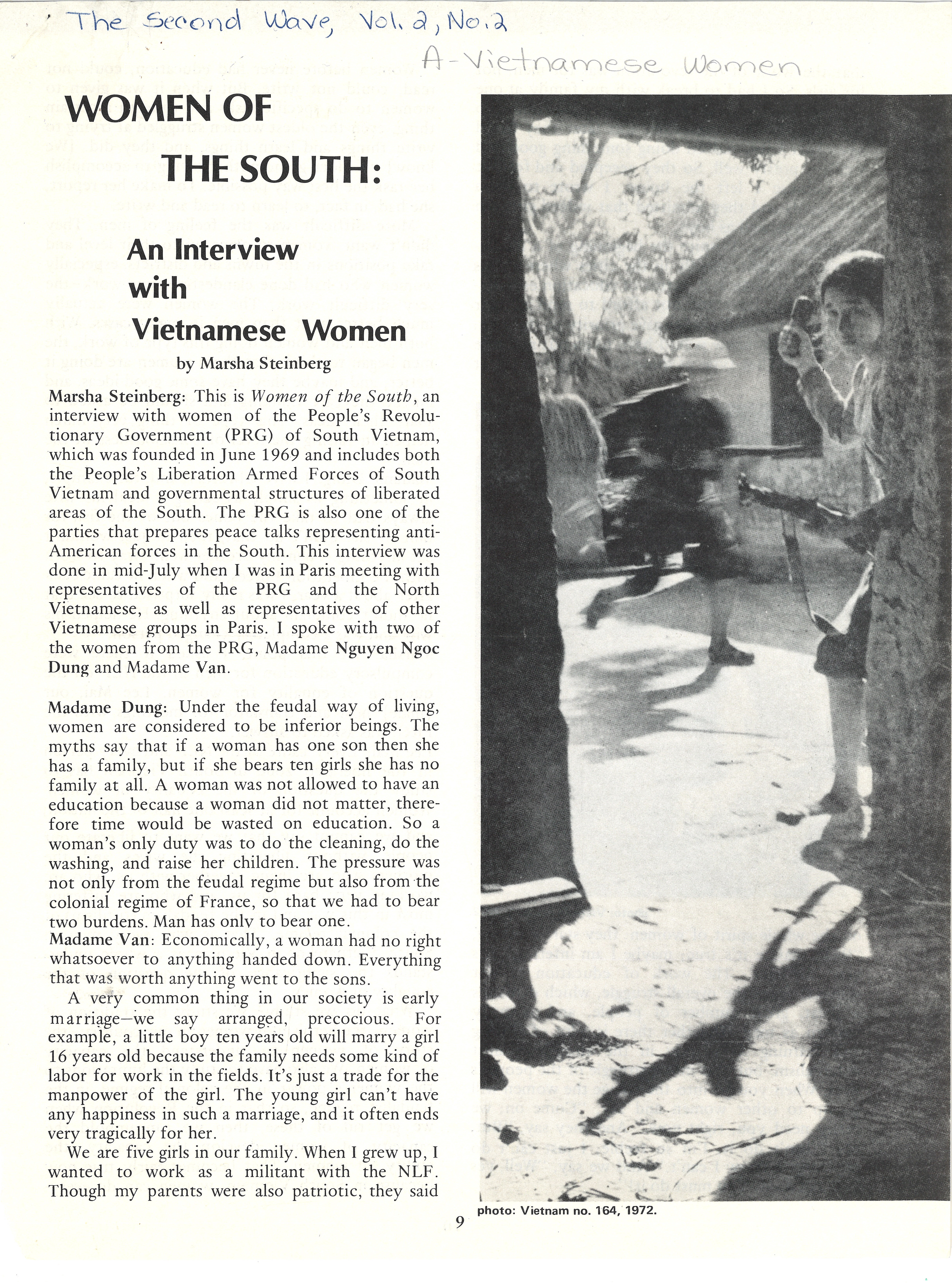 "Women Of The South: An Interview With Vietnamese Women" by Marsha Steinberg, The Second Wave, Vol. 2, No. 2