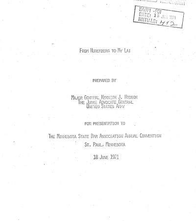 "From Nuremberg To My Lai" by Kenneth J. Hodson, June 18, 1971