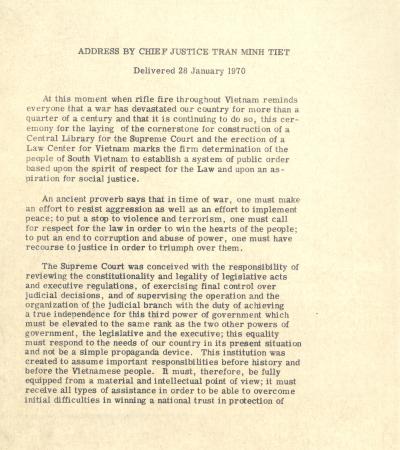 Address by Chief Justice Tran Minh Tiet, January 28, 1970