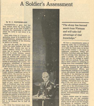 "The Army: A Soldier's Assessment" by W.C. Westmoreland, The New York Times, January 5, 1972
