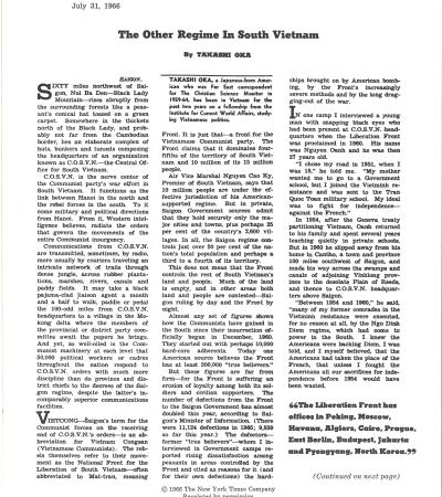 "The Other Regime In South Vietnam" by Takashi Oka, The New York Times Magazine, July 31, 1966