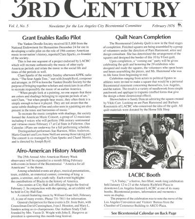 This newsletter, distributed by the Los Angeles City Bicentennial Committee, gives insight into the breadth of Bicentennial activities planned by one major U.S. city.