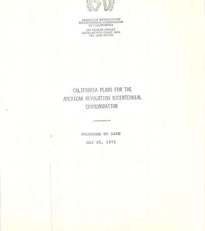California Plans For The American Revolution Bicentennial Commemoration, May 25, 1973