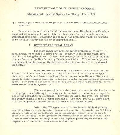 Interview With General Nguyễn Đức Thắng, June 13, 1967