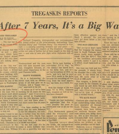 "After 7 Years, It's a Big War" by Richard Tregaskis, San Francisco Examiner & Chronicle, April 21, 1968