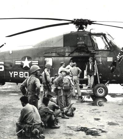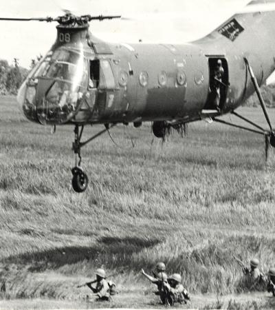 Photograph of American Helicopter and South Vietnamese Troops in Vietnam