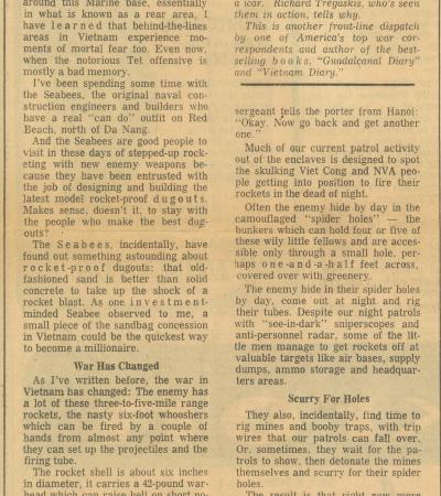 "Seabees Sold on Use of Sand for Dugouts" by Richard Tregaskis, San Francisco Examiner, May 7, 1968