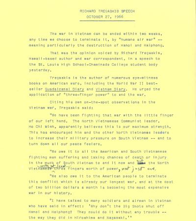 Richard Tregaskis Speech, October 27, 1966