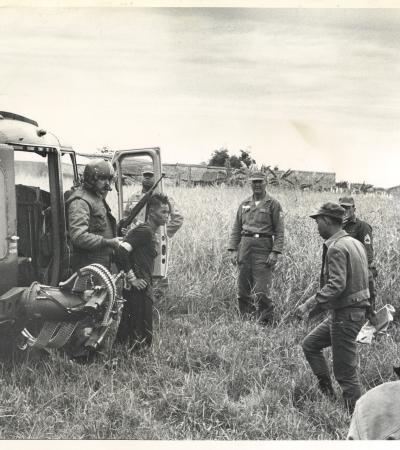 Captain Don Finney, Major Allan Galfund and 1st Lieutenant Lew Stone at Vinh Long, Vietnam during combat support operations against the Viet Cong.