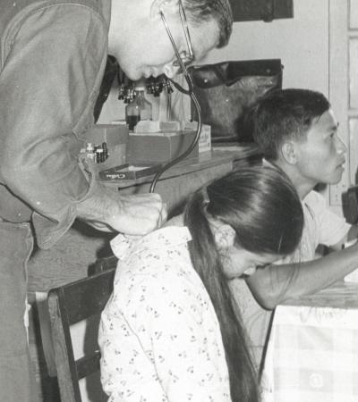 Photograph of U.S. Military Dentist Treating a Vietnamese Patient