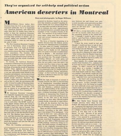 "American Deserters in Montreal" by Roger Williams, Boston Sunday Globe, June 28, 1970