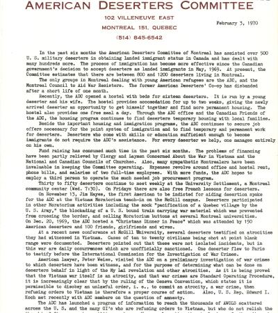 American Deserters Committee Newsletter, February 3, 1970