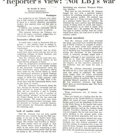 "Reporter's View: 'Not LBJ's War'" by Saville R. Davis, The Christian Science Monitor, January 3, 1969